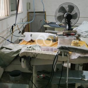 裤头车:3台,剪线机:1台,断布机:1台,钉扣:4台,平眼:2台,平车:25台,电烫炉:1台,针扣机:2台,直眼:2台,双针车:2台,电剪:2台,烫台:4台,冚车:6台,锅炉:1台,裁床:1台,五线:3台,四线:15台
