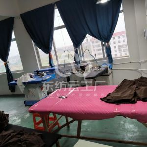 裤头车:1台,电脑自动裁:1台,定扣机:2台,钉扣:2台,平眼:1台,平车:30台,电烫炉:1台,直眼:1台,双针车:1台,烫台:2台,裁床:1台,五线:3台,四线:1台