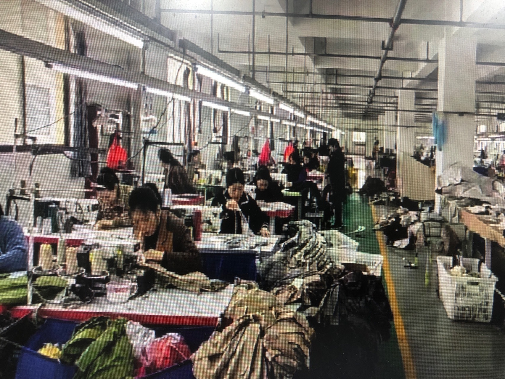 裤头车:2台,智能模板机:1台,自动拉布机:1台,电脑自动裁:1台,啤机:1台,松布机:3台,定扣机:3台,挑脚机:1台,验布机:2台,断布机:3台,钉扣:3台,自动打扣机:2台,颗粒炉:2台,平眼:3台,平车:60台,电烫炉:4台,针扣机:1台,直眼:3台,电脑凤眼:1台,打边机:8台,双针车:3台,电剪:6台,烫台:6台,冚车:4台,唛架机:1台,锅炉:2台,水空调:4台,裁床:3台,五线:4台,四线:6台