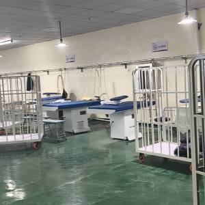 裤头车:4台,智能模板机:9台,自动拉布机:1台,剪线机:4台,断布机:2台,钉扣:2台,自动打扣机:4台,平眼:2台,平车:200台,电烫炉:3台,直眼:1台,打边机:50台,双针车:6台,烫台:15台,冚车:6台,唛架机:1台,裁床:3台,五线:6台
