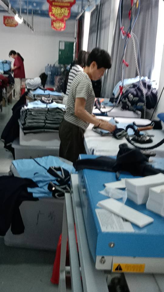 裤头车:1台,智能模板机:2台,松布机:1台,定扣机:2台,挑脚机:1台,剪线机:1台,钉扣:1台,自动打扣机:1台,平眼:1台,平车:45台,电烫炉:3台,针扣机:1台,直眼:1台,打边机:4台,双针车:1台,电剪:1台,烫台:3台,冚车:2台,唛架机:1台,锅炉:1台,水空调:5台,裁床:1台,五线:2台,四线:3台