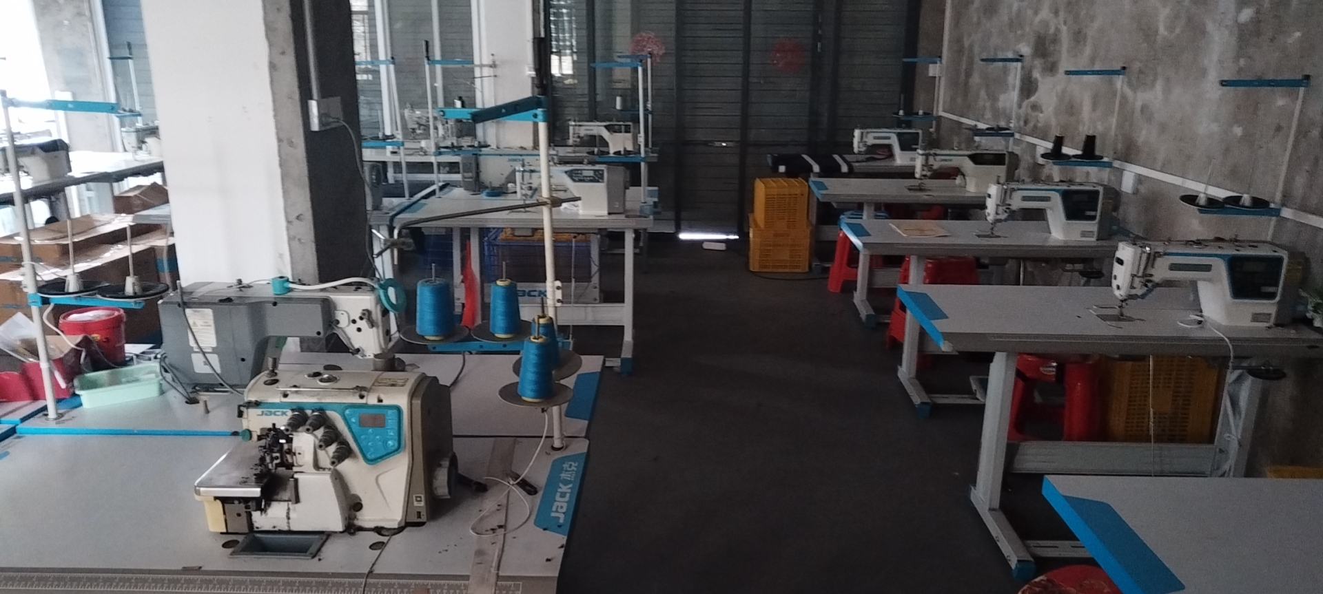 裤头车:1台,平车:30台,电烫炉:1台,烫台:1台,冚车:2台,五线:2台,四线:5台