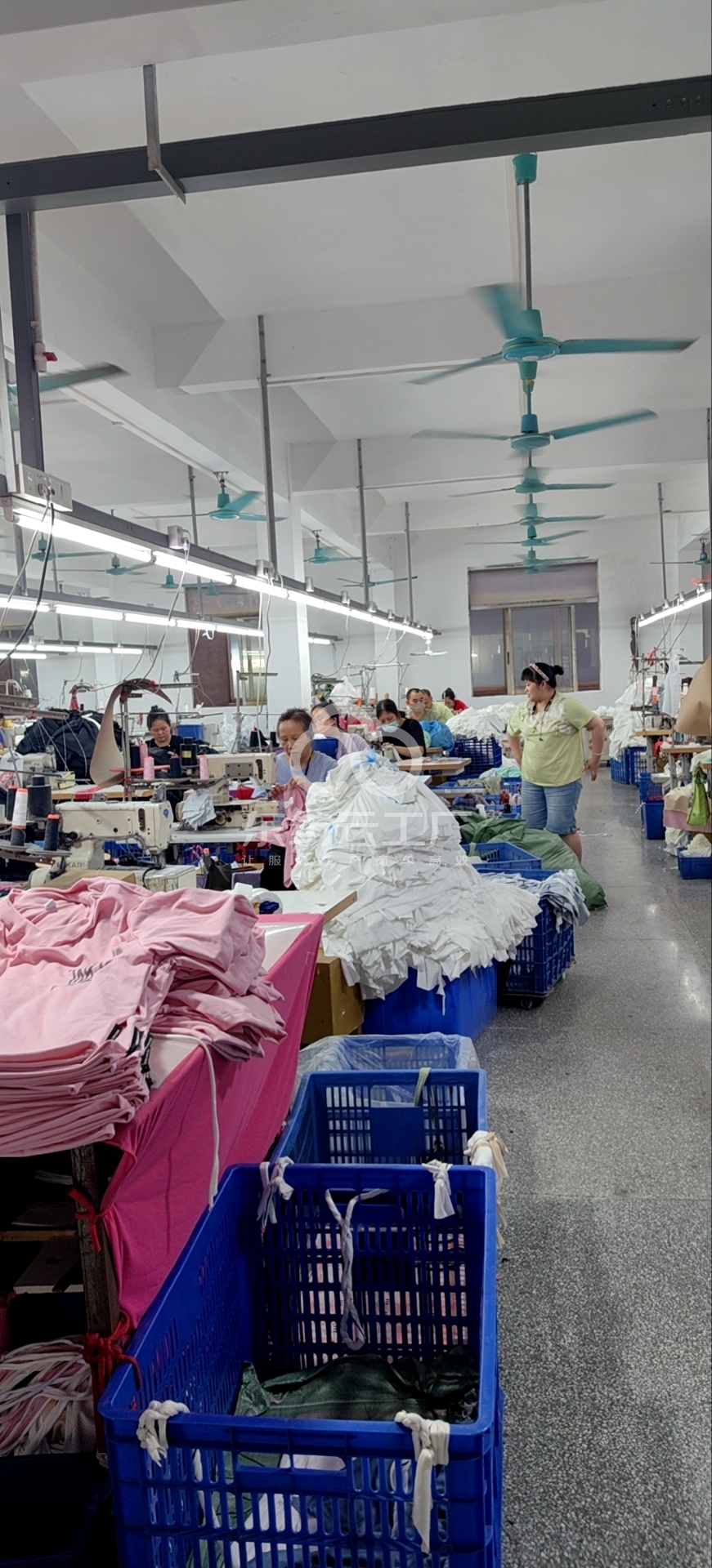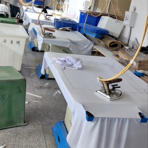 松布机:1台,剪线机:2台,验布机:1台,断布机:6台,颗粒炉:1台,平车:42台,电烫炉:1台,打边机:7台,双针车:1台,电剪:12台,烫台:7台,冚车:10台,唛架机:2台,锅炉:1台,裁床:6台,五线:2台,四线:25台