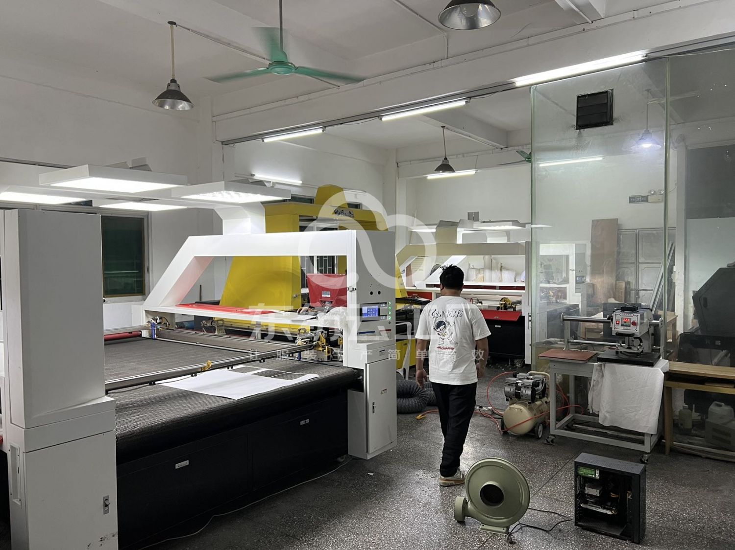 本厂拥有数码印花打印机 10 台,热转印机 3 台,日产量 2 万米。白墨印花打印机 3 台,全景激光切割机 5台,压烫机 10 台,小型贴图激光切割机 3 台,数码涂料白墨直喷椭圆机 2 台。自有数码印花底布工厂合作,提供包工包料印花服务,承接各类数码印花订单,无缝工艺订单,为您提供一站式数码印花解决方案。