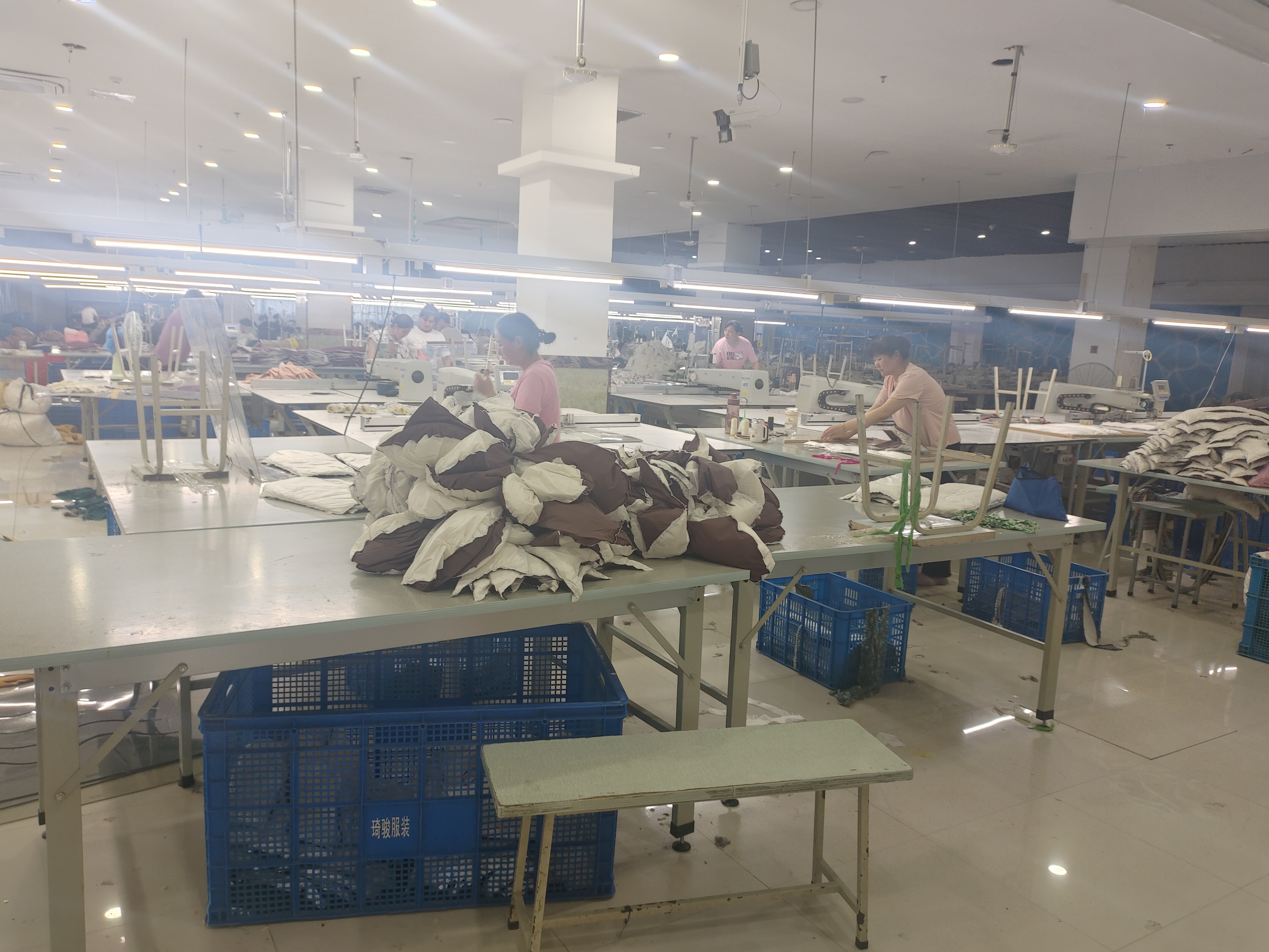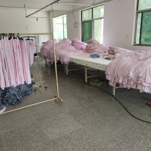 针织梭织各两条流水线80人,人员稳定,主做内外贸订单,内销半精品之内的品质。