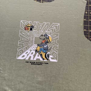 自家地皮建工厂,稳定人手,价格合理,二十几年老师傅把手每一件货物,一天可印4-6K件高质量印花。目前主印童装、婴装、成人。工艺可做拉浆、厚板、3D发泡等