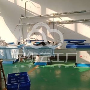裤头车:1台,啤机:1台,断布机:1台,钉扣:1台,平眼:1台,平车:40台,电烫炉:1台,直眼:1台,双针车:1台,电剪:1台,烫台:3台,冚车:2台,唛架机:1台,裁床:1台,四线:4台