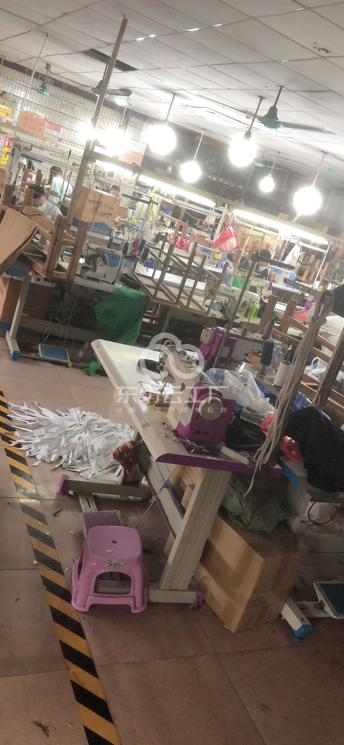 定扣机:1台,断布机:1台,平眼:1台,平车:40台,电烫炉:1台,直眼:1台,打边机:20台,电剪:2台,烫台:3台,冚车:2台,唛架机:1台,裁床:1台,五线:3台,四线:20台