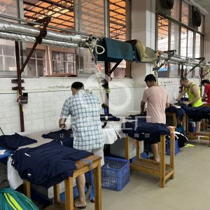 自带织布厂-染厂-印花厂-制衣厂,正新建占地100的半自动车间,2023年初投入使用,目前使用的是旧厂。目前OEM主要是荷马,沃尔玛等,接受验厂。