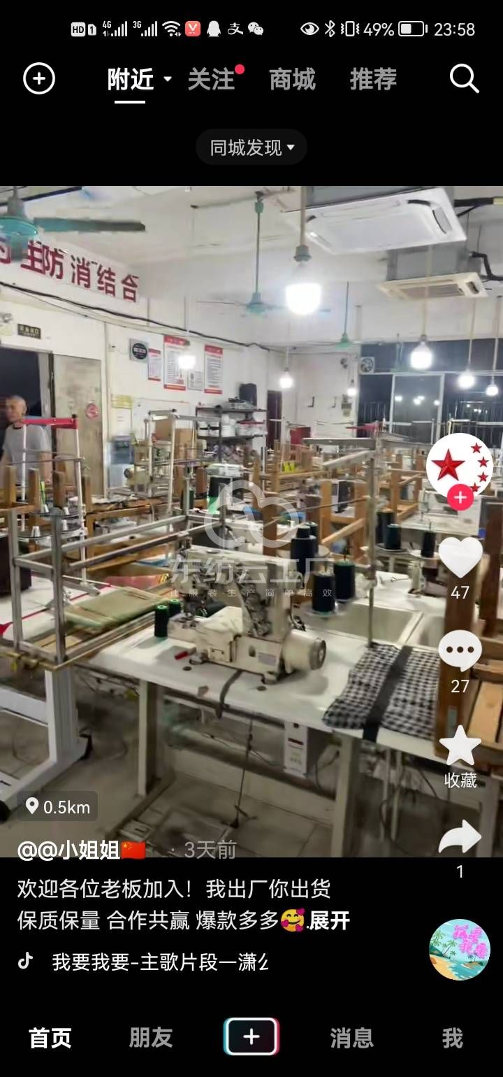 自动拉布机:1台,电脑自动裁:3台,啤机:1台,松布机:1台,定扣机:2台,剪线机:2台,断布机:1台,钉扣:2台,自动打扣机:2台,颗粒炉:2台,平眼:2台,平车:28台,电烫炉:2台,打边机:15台,双针车:2台,电剪:3台,烫台:2台,冚车:2台,唛架机:1台,锅炉:2台,水空调:2台,裁床:1台,五线:5台,四线:15台