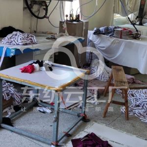松布机:1台,定扣机:1台,断布机:2台,钉扣:2台,平眼:1台,吊机:1台,平车:28台,电烫炉:2台,电剪:4台,烫台:3台,冚车:5台,唛架机:1台,水空调:5台,裁床:2台,四线:15台
