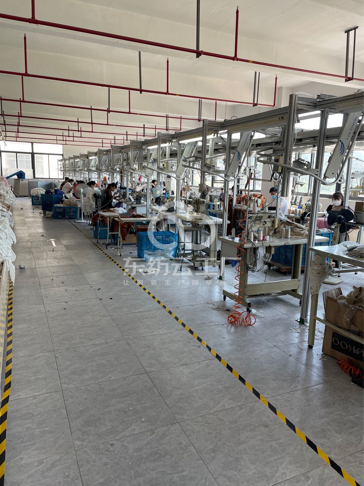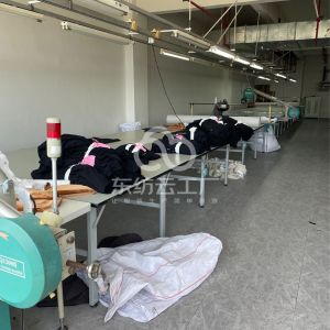 定扣机:1台,挑脚机:1台,断布机:2台,钉扣:1台,自动打扣机:4台,平眼:1台,吊机:1台,平车:40台,电烫炉:1台,针扣机:1台,直眼:1台,打边机:8台,双针车:2台,电剪:4台,烫台:5台,冚车:5台,唛架机:1台,裁床:2台,五线:4台,四线:8台