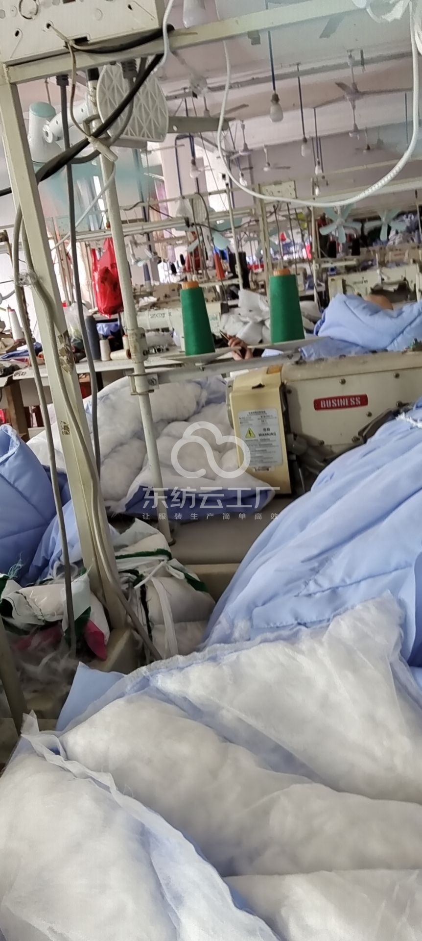 定扣机:2台,断布机:1台,钉扣:2台,平车:50台,电烫炉:3台,打边机:5台,烫台:3台,冚车:2台,五线:2台,四线:2台