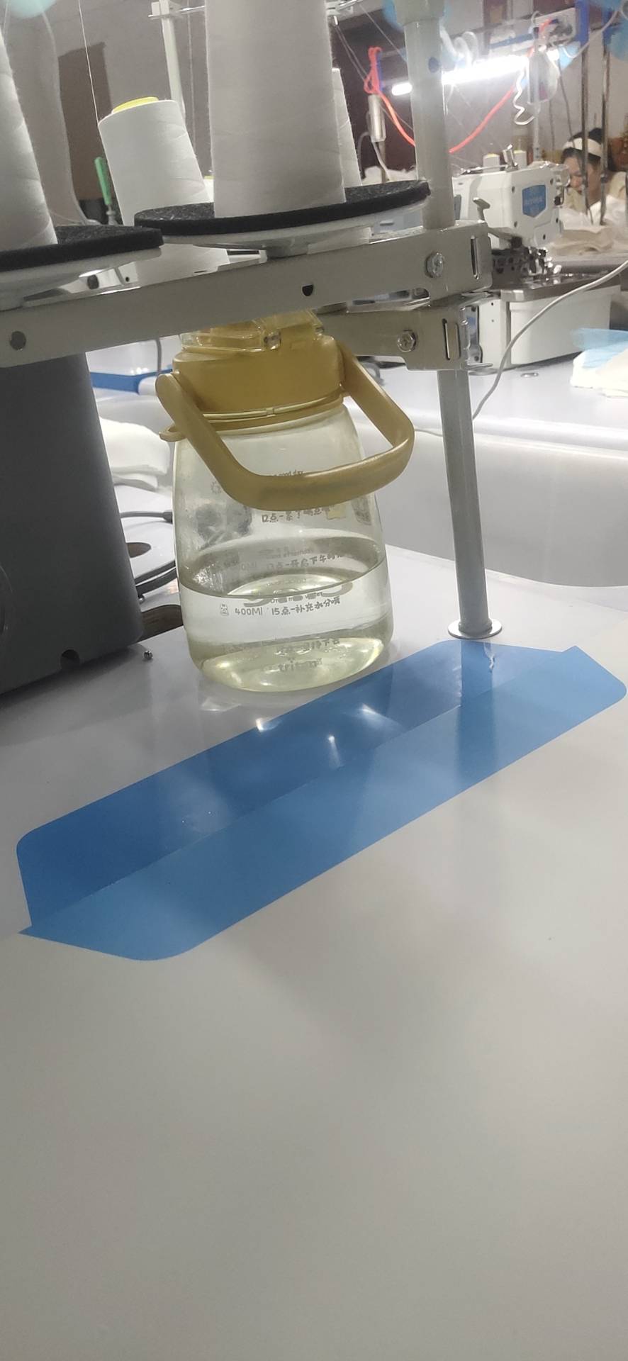 剪线机:1台,断布机:1台,平车:15台,打边机:5台,双针车:1台,烫台:1台,冚车:1台,唛架机:1台,锅炉:1台,水空调:1台,五线:1台