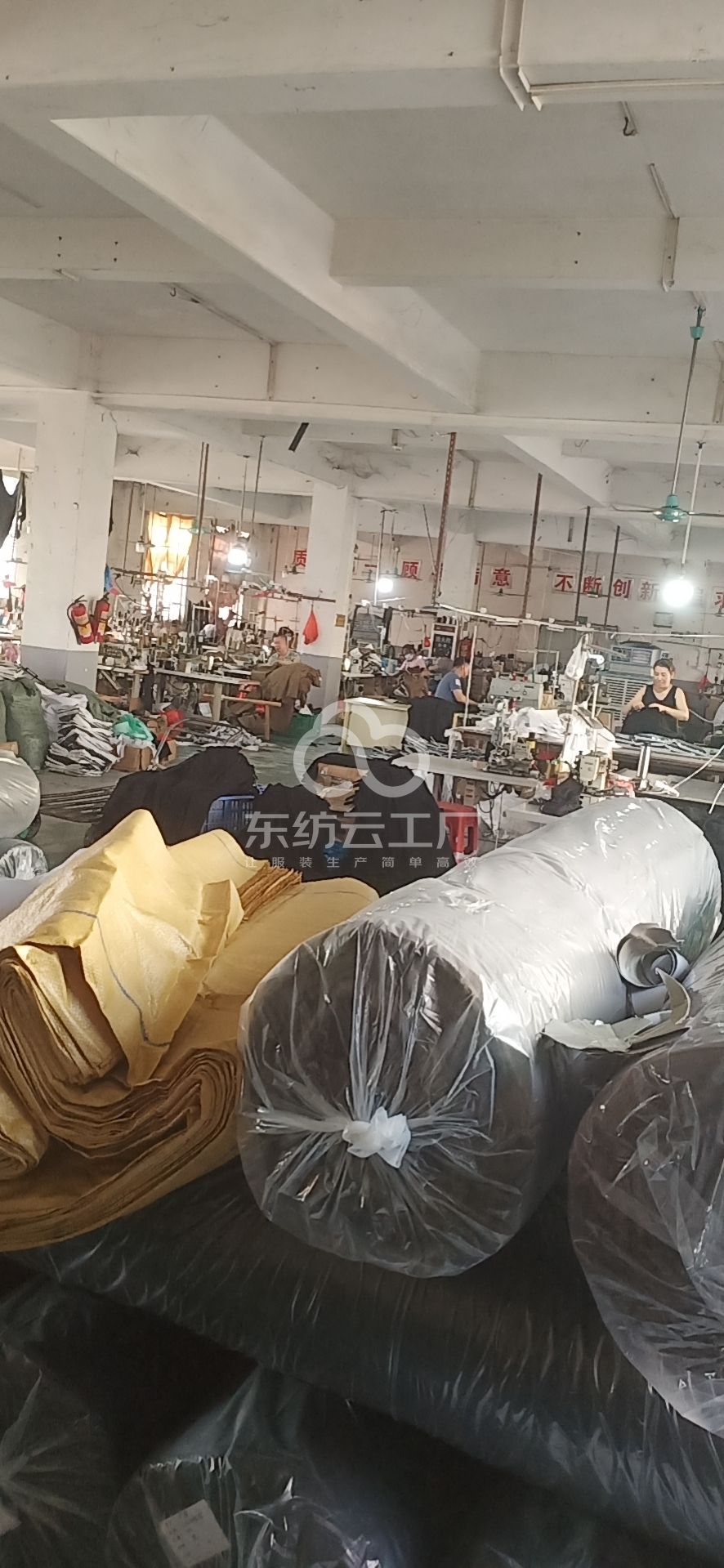 剪线机:2台,断布机:2台,钉扣:1台,平车:28台,电烫炉:1台,直眼:1台,电脑凤眼:1台,打边机:8台,双针车:9台,烫台:2台,锅炉:1台,裁床:1台,五线:9台
