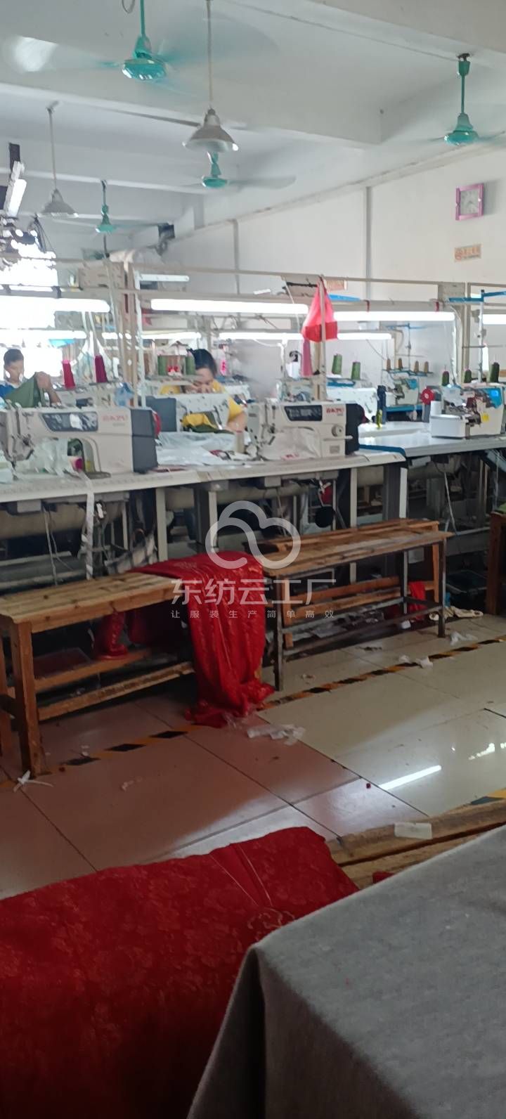啤机:2台,剪线机:2台,断布机:1台,钉扣:1台,平眼:1台,吊机:1台,平车:30台,电烫炉:1台,直眼:1台,电剪:3台,烫台:2台,唛架机:1台,锅炉:1台,水空调:2台,裁床:1台,四线:15台