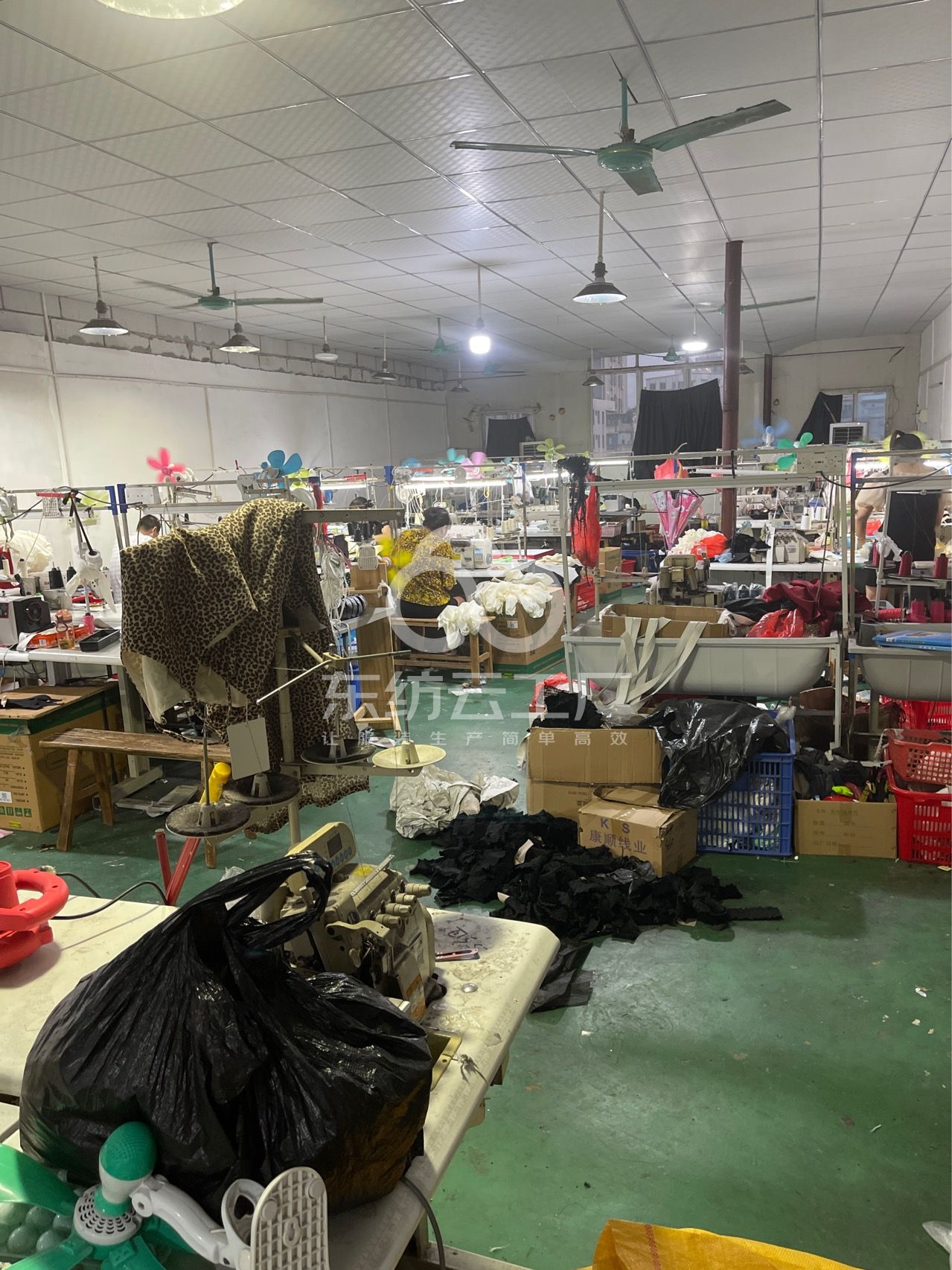 断布机:1台,电烫炉:1台,打边机:20台,双针车:1台,电剪:2台,烫台:2台,冚车:1台,唛架机:2台,锅炉:1台,水空调:5台,裁床:1台,五线:5台,四线:20台