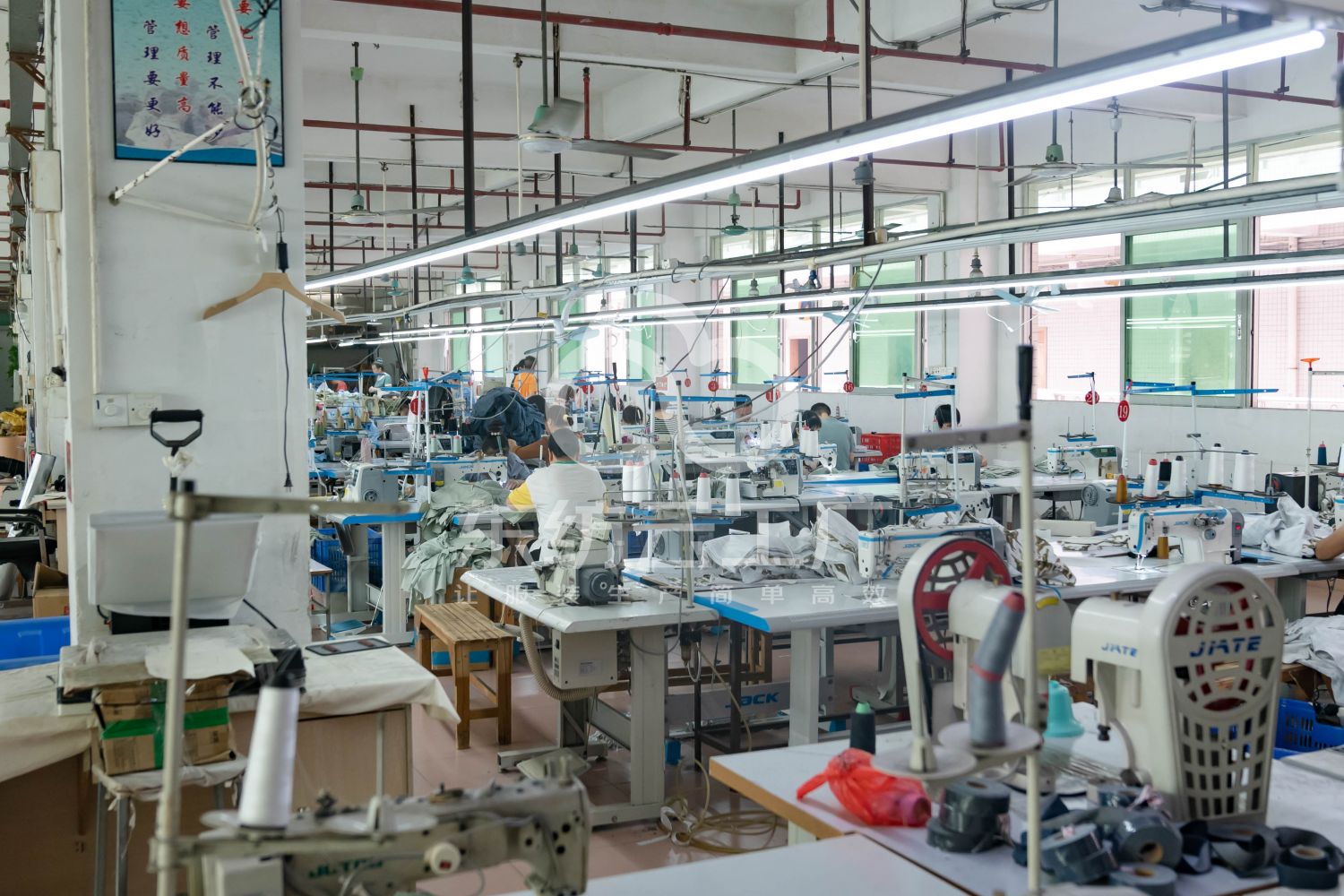 车间配有配套专机设备、打枣 、直眼、凤眼、挑边、打扣,尾部人员及设备齐全,