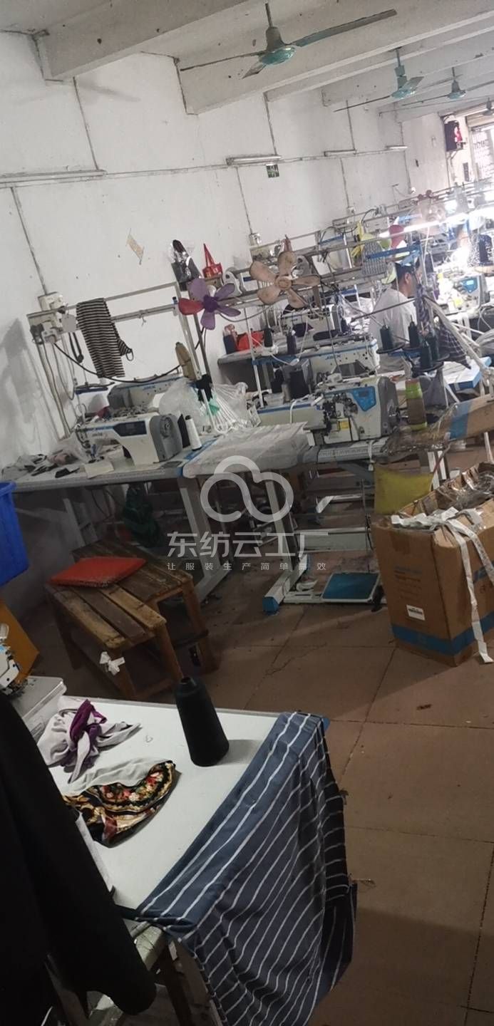 吊机:1台,平车:8台,电烫炉:1台,打边机:10台,双针车:2台,电剪:2台,烫台:2台,冚车:4台,唛架机:1台,锅炉:1台,水空调:4台,裁床:1台,四线:10台