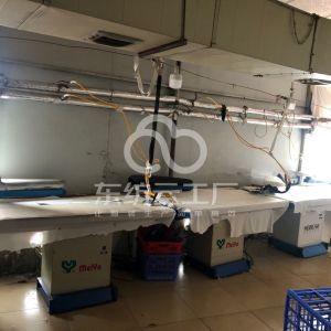 定扣机:4台,剪线机:1台,断布机:1台,钉扣:1台,平车:45台,打边机:10台,电剪:2台,烫台:4台,冚车:1台,唛架机:1台,锅炉:1台,水空调:3台,裁床:1台,五线:12台
