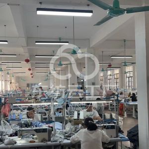 设针织组,梭织组两条生产线。固定车位50人。车间配技术指导,中查,尾查,大烫,裁床,尾部10余人。