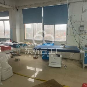 智能模板机:1台,自动拉布机:11台,定扣机:2台,挑脚机:1台,剪线机:5台,钉扣:1台,自动打扣机:1台,颗粒炉:1台,平眼:2台,平车:15台,针扣机:15台,双针车:10台,烫台:2台,唛架机:2台,裁床:3台,五线:2台,四线:5台