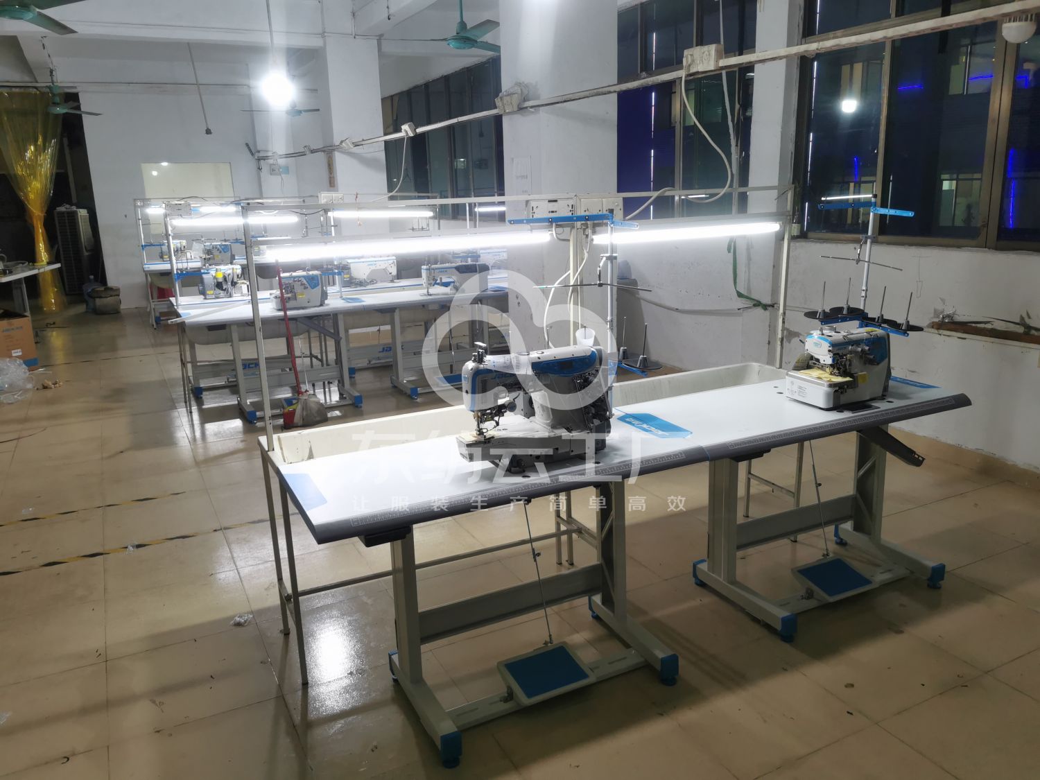 剪线机:1台,断布机:1台,平车:15台,电剪:2台,烫台:2台,冚车:3台,唛架机:1台,锅炉:1台,水空调:2台,裁床:1台,五线:2台,四线:6台