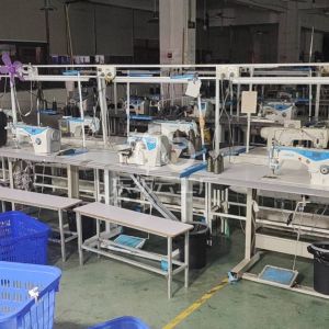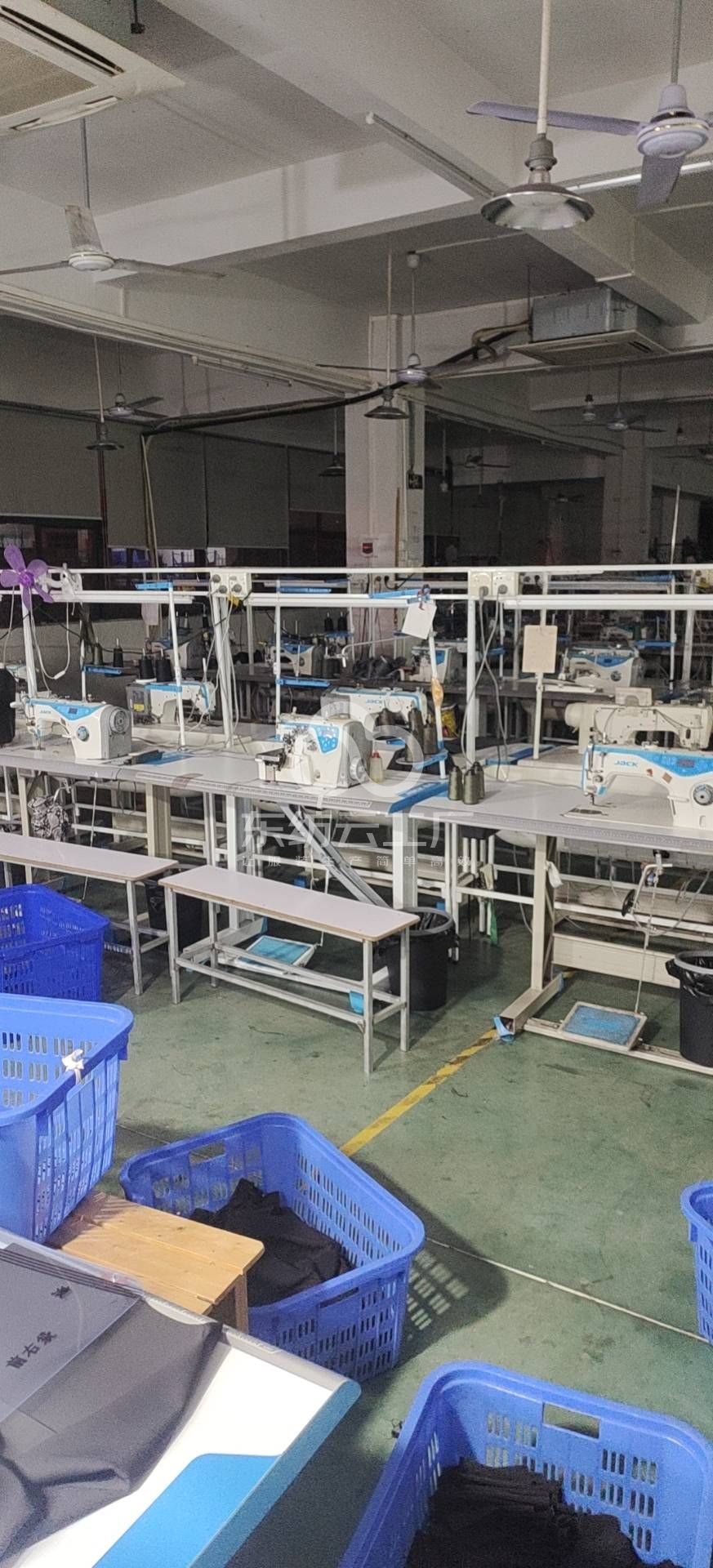 裤头车:1台,剪线机:1台,断布机:2台,平车:22台,电烫炉:2台,打边机:19台,双针车:1台,电剪:3台,烫台:5台,冚车:3台,唛架机:1台,锅炉:2台,裁床:1台,五线:5台,四线:14台