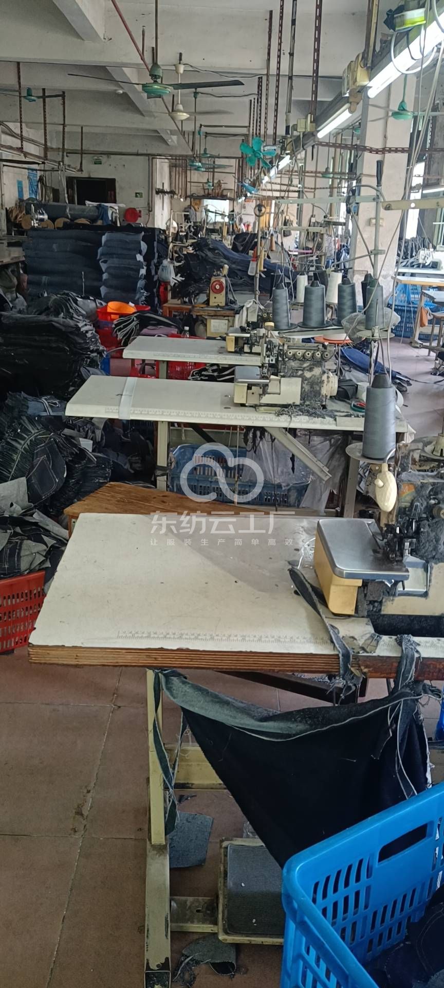裤头车:2台,定扣机:2台,剪线机:4台,自动打扣机:3台,平眼:4台,平车:5台,电烫炉:2台