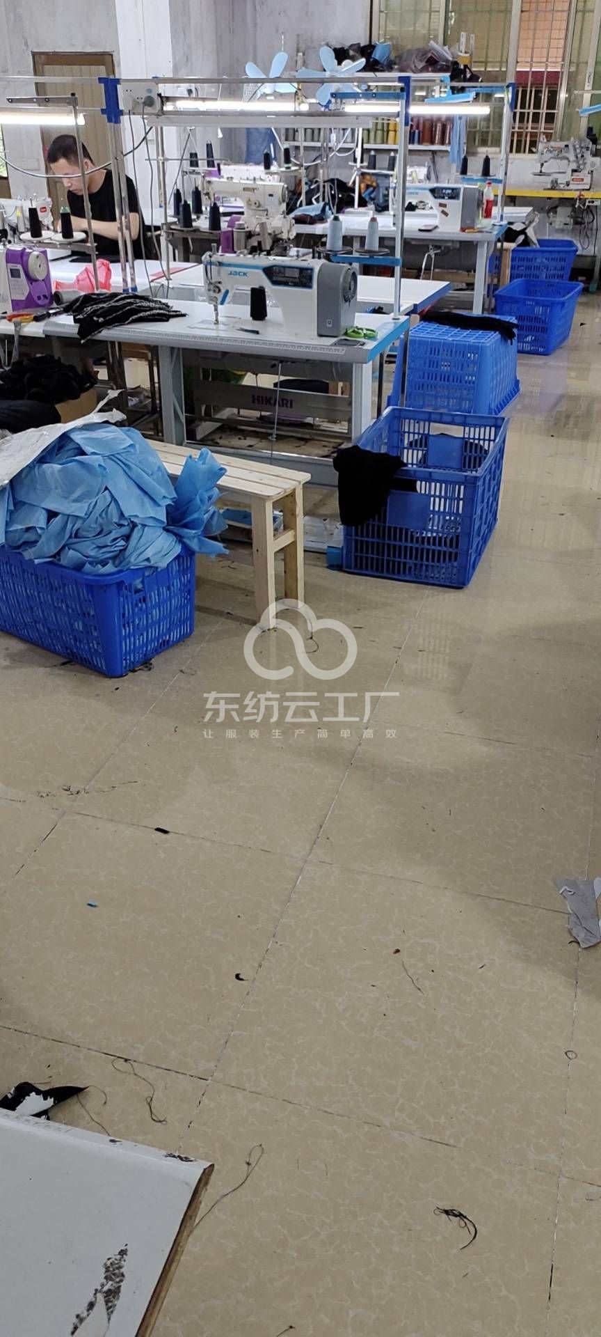 裤头车:1台,松布机:1台,断布机:1台,钉扣:1台,吊机:1台,平车:5台,电烫炉:1台,双针车:1台,电剪:3台,烫台:1台,冚车:1台,唛架机:1台,锅炉:1台,裁床:1台,五线:1台,四线:2台