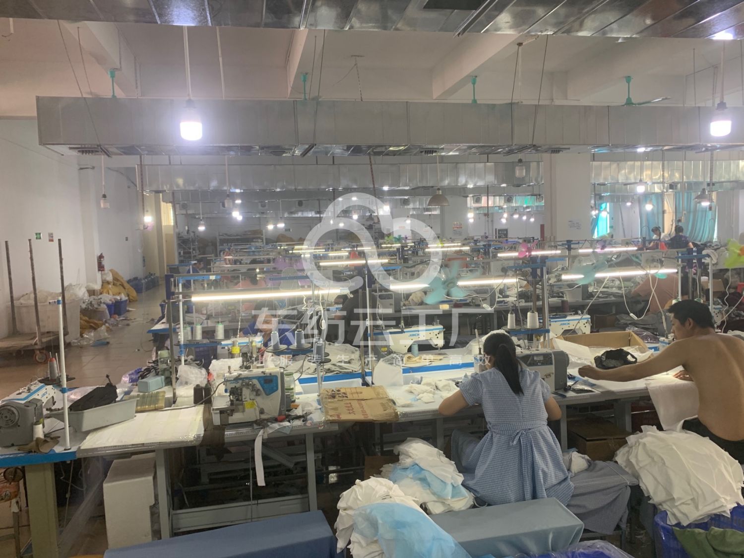 松布机:1台,验布机:1台,断布机:2台,平车:40台,电烫炉:2台,打边机:28台,电剪:5台,烫台:8台,冚车:8台,唛架机:2台,锅炉:2台,水空调:7台,裁床:2台,四线:28台