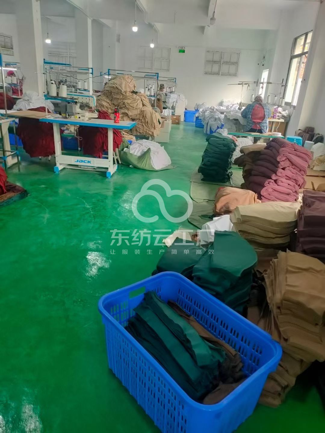 自动拉布机:1台,剪线机:5台,断布机:2台,平眼:2台,平车:6台,双针车:4台,电剪:4台,烫台:4台,冚车:5台,唛架机:2台,裁床:4台