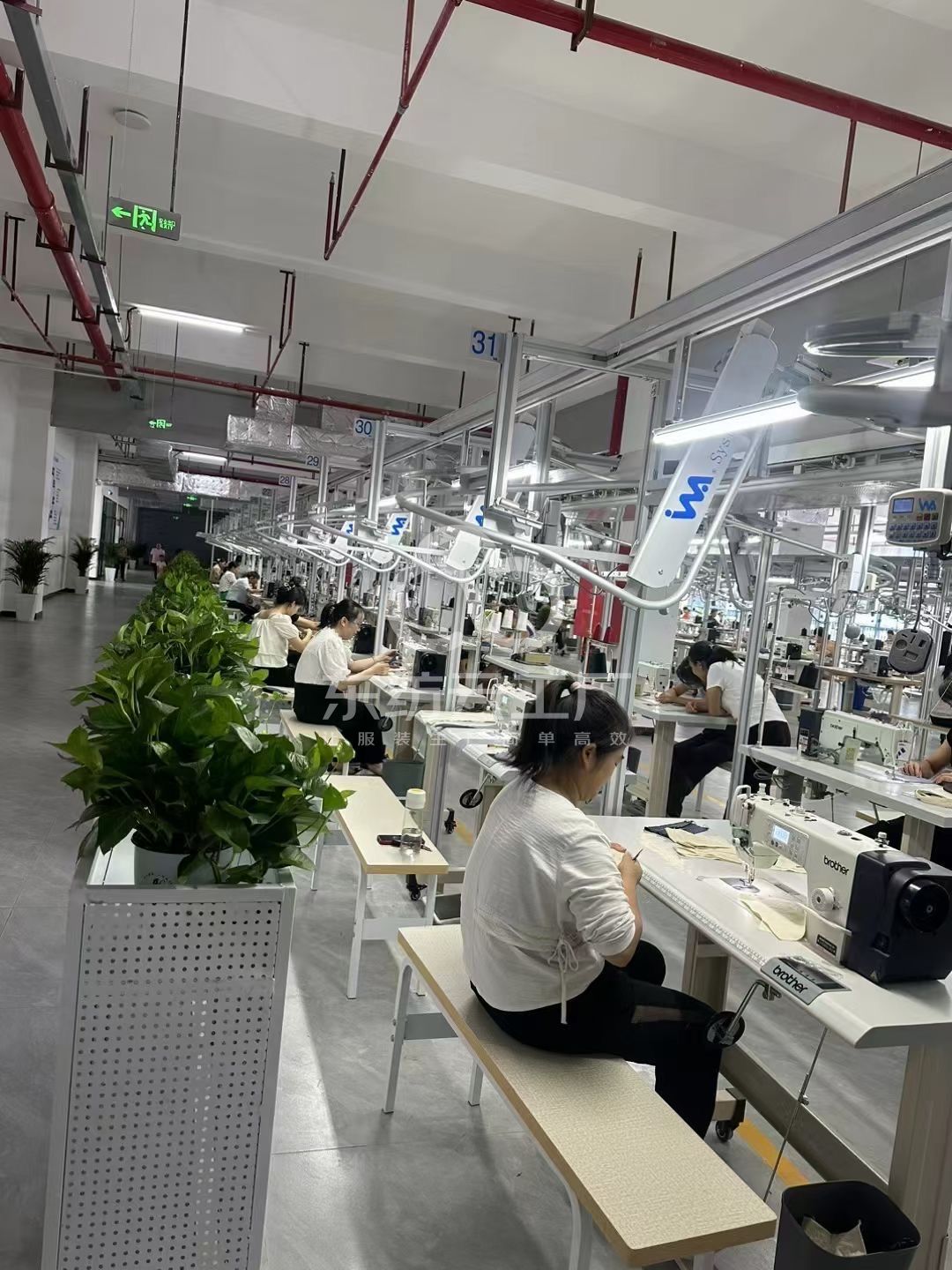 裤头车:2台,智能模板机:6台,自动拉布机:2台,电脑自动裁:1台,啤机:3台,松布机:1台,定扣机:2台,挑脚机:1台,剪线机:3台,验布机:1台,断布机:3台,钉扣:3台,自动打扣机:3台,平眼:1台,平车:90台,电烫炉:1台,针扣机:2台,直眼:1台,电脑凤眼:1台,打边机:36台,双针车:4台,电剪:3台,烫台:16台,冚车:5台,唛架机:2台,锅炉:1台,裁床:3台,五线:16台,四线:20台