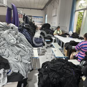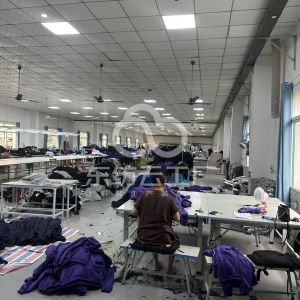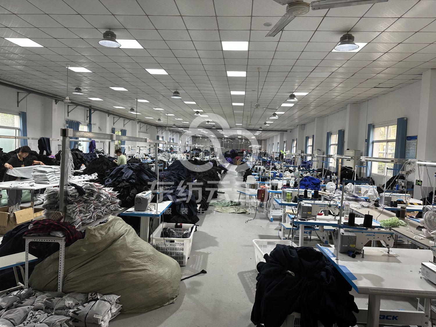 定扣机:2台,断布机:2台,钉扣:4台,自动打扣机:1台,平眼:1台,平车:50台,电烫炉:3台,双针车:2台,电剪:2台,烫台:3台,冚车:4台,唛架机:1台,裁床:2台,五线:7台,四线:33台