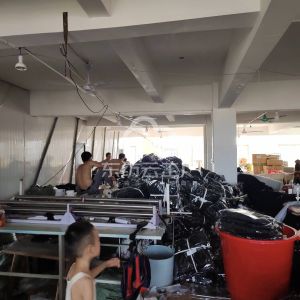裤头车:1台,松布机:1台,剪线机:3台,颗粒炉:1台,平车:58台,打边机:20台,双针车:2台,电剪:4台,烫台:5台,冚车:4台,唛架机:2台,裁床:1台,五线:10台,四线:10台