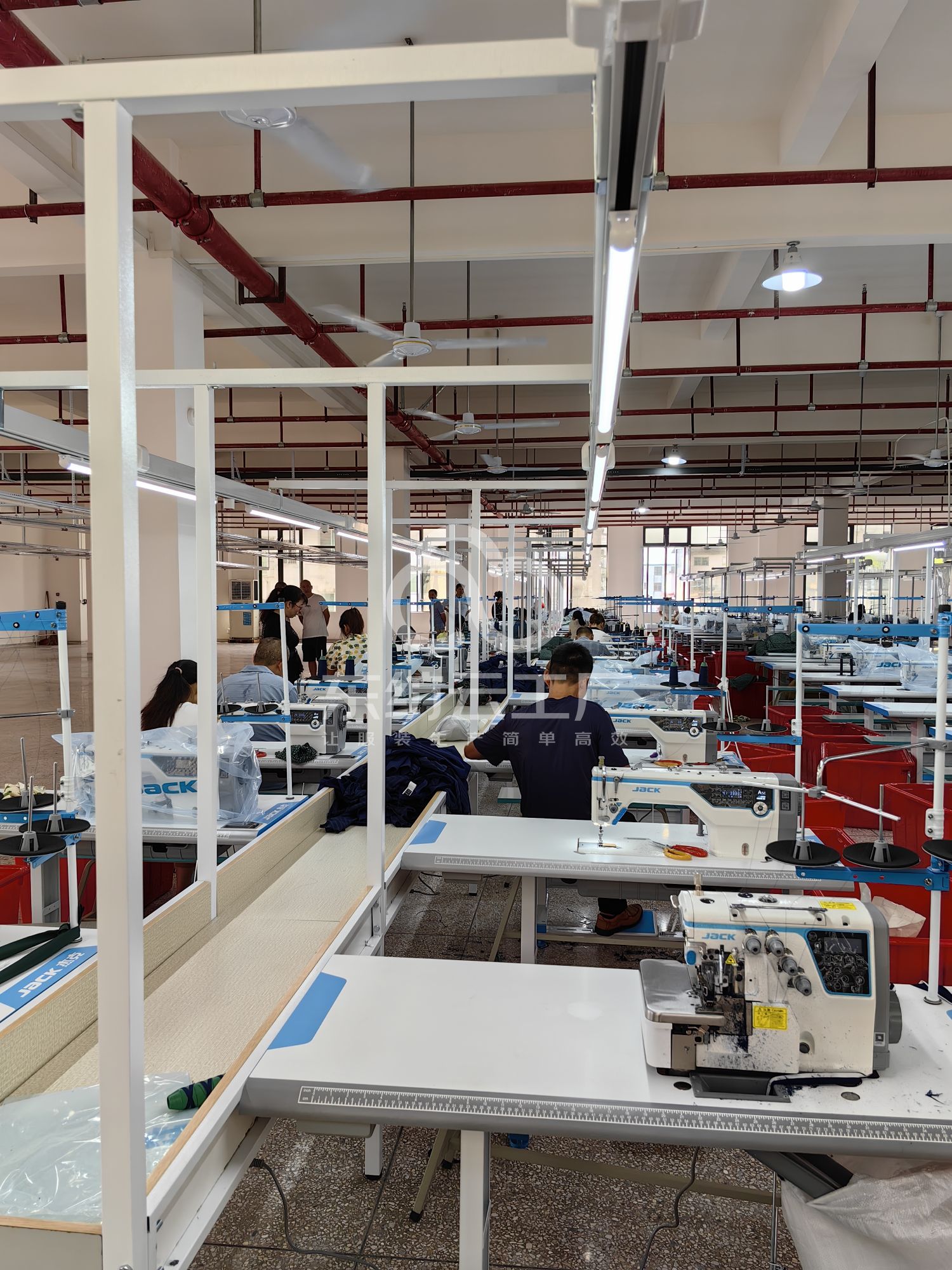 定扣机:3台,验布机:1台,断布机:6台,钉扣:3台,自动打扣机:3台,颗粒炉:2台,平眼:2台,平车:300台,电烫炉:1台,直眼:3台,打边机:80台,电剪:10台,烫台:22台,冚车:3台,唛架机:2台,锅炉:2台,水空调:12台,裁床:8台,五线:45台,四线:35台