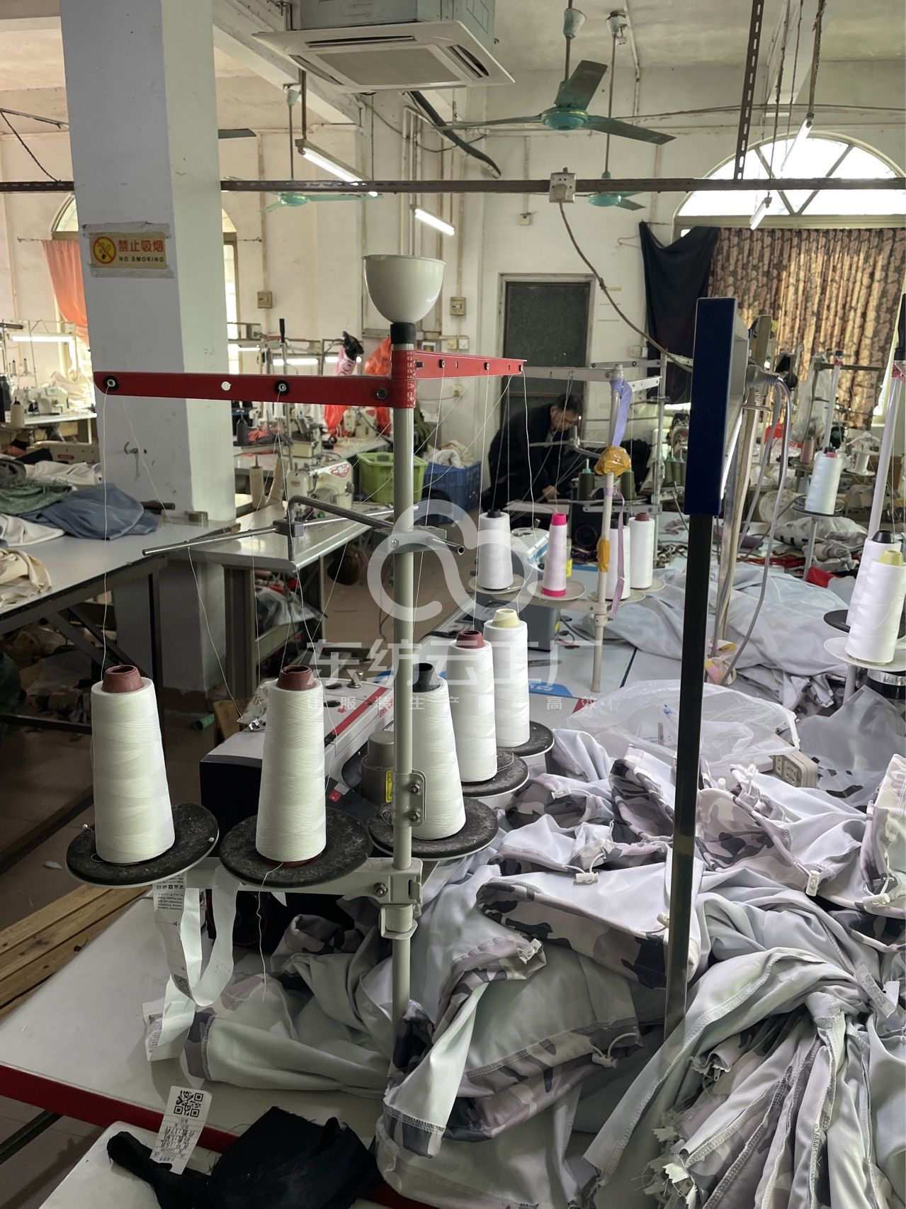 啤机:4台,定扣机:1台,剪线机:1台,验布机:1台,断布机:4台,钉扣:1台,平车:60台,电烫炉:4台,直眼:1台,打边机:12台,双针车:4台,电剪:6台,烫台:8台,冚车:4台,唛架机:2台,锅炉:6台,裁床:3台,五线:15台,四线:15台