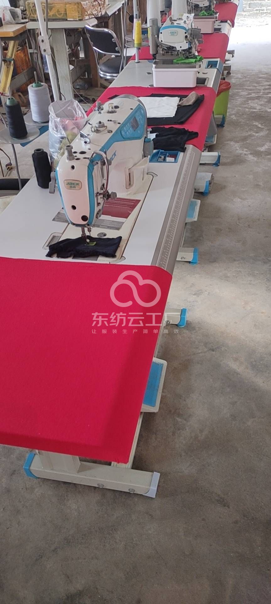 断布机:1台,平车:5台,打边机:4台,双针车:1台,电剪:1台