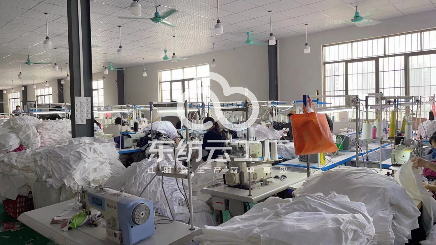 剪线机:5台,断布机:2台,钉扣:2台,自动打扣机:1台,平车:80台,打边机:4台,双针车:3台,电剪:5台,烫台:7台,冚车:6台,唛架机:1台,水空调:6台,裁床:2台,五线:3台,四线:30台