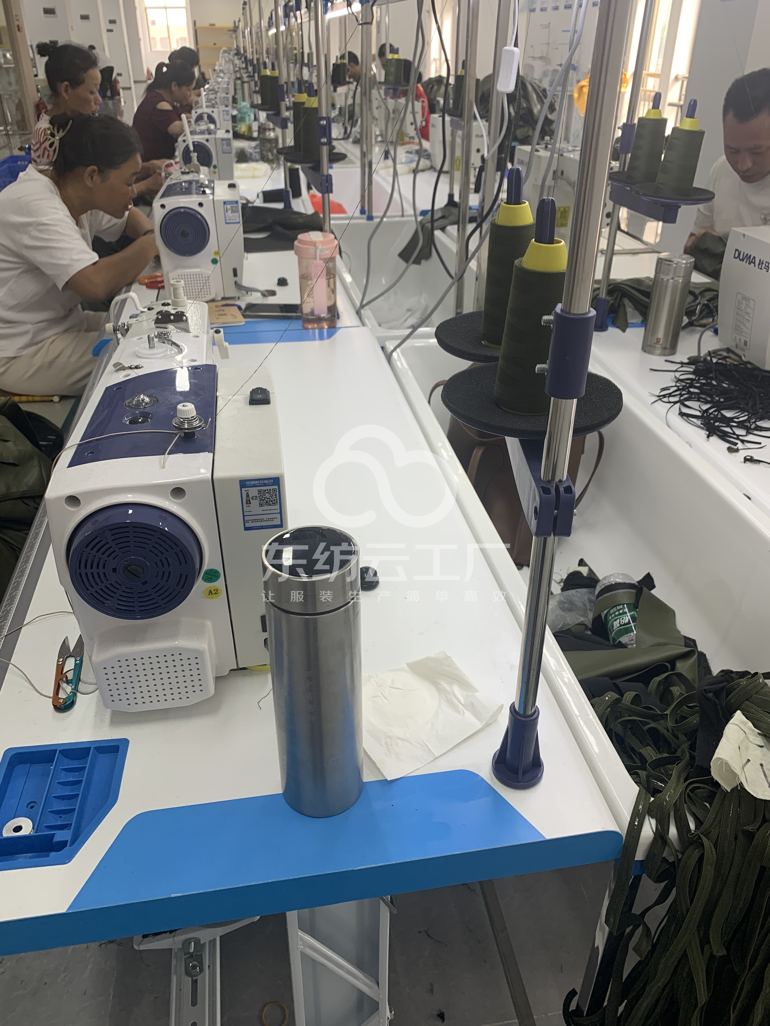 裤头车:1台,智能模板机:5台,自动拉布机:3台,电脑自动裁:1台,啤机:5台,松布机:1台,定扣机:5台,验布机:1台,断布机:3台,钉扣:5台,自动打扣机:5台,平车:60台,电烫炉:10台,直眼:10台,电脑凤眼:2台,打边机:20台,双针车:10台,电剪:5台,烫台:10台,冚车:10台,唛架机:2台,锅炉:5台,裁床:3台,五线:5台,四线:5台