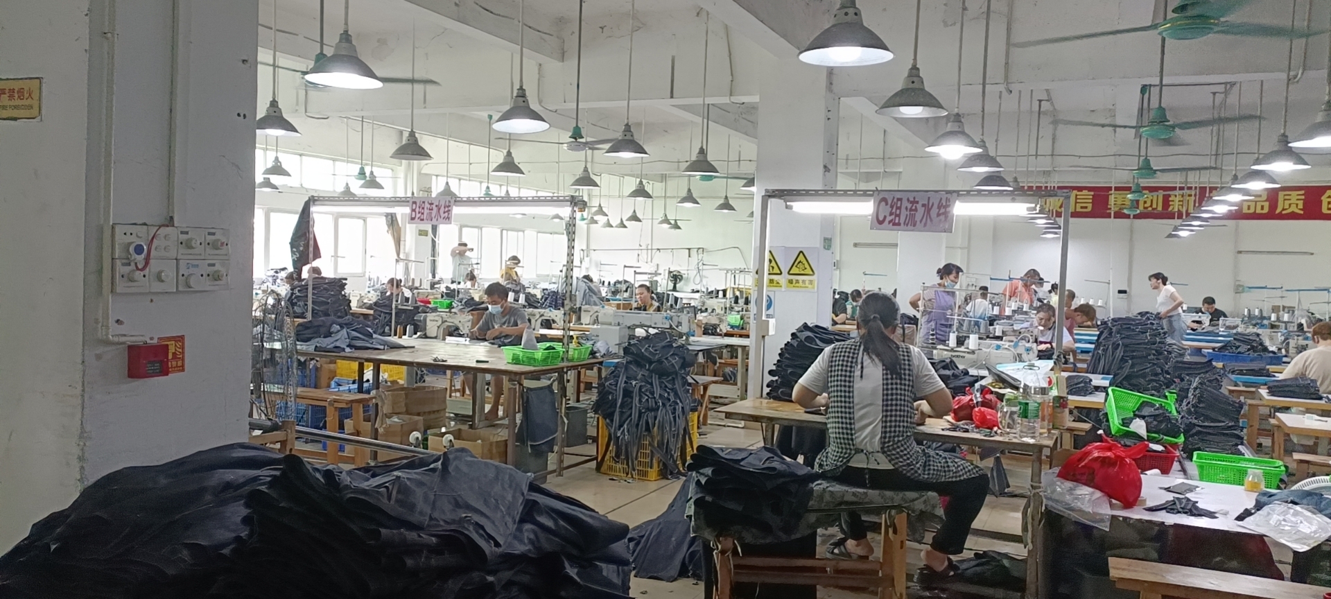 我们有洗⽔⻋间以及后整⻋间,层层把关每⼀件产品都达到标准优质