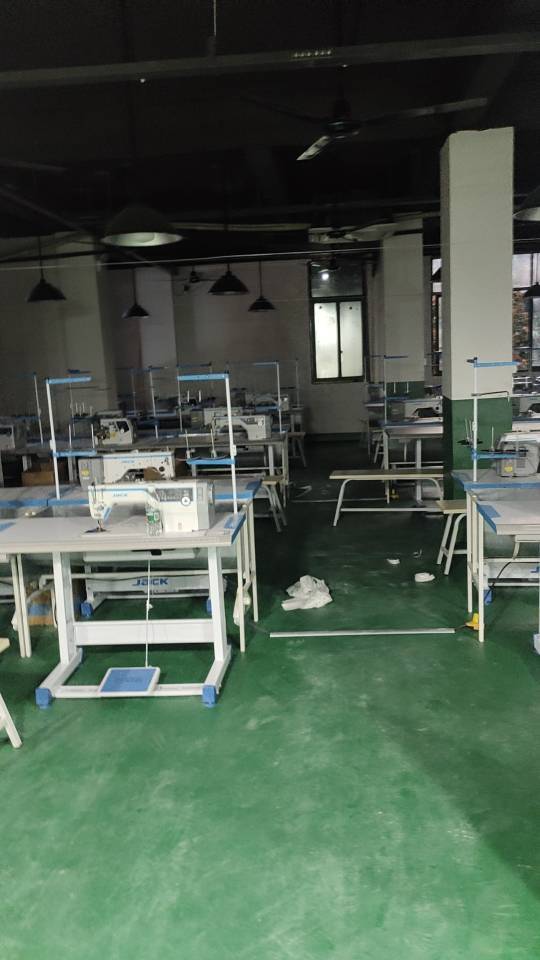 断布机:2台,钉扣:4台,自动打扣机:4台,颗粒炉:1台,平眼:2台,平车:60台,电烫炉:2台,直眼:1台,电脑凤眼:1台,打边机:40台,电剪:6台,烫台:4台,冚车:4台,唛架机:1台,锅炉:2台,水空调:5台,裁床:14台,四线:40台