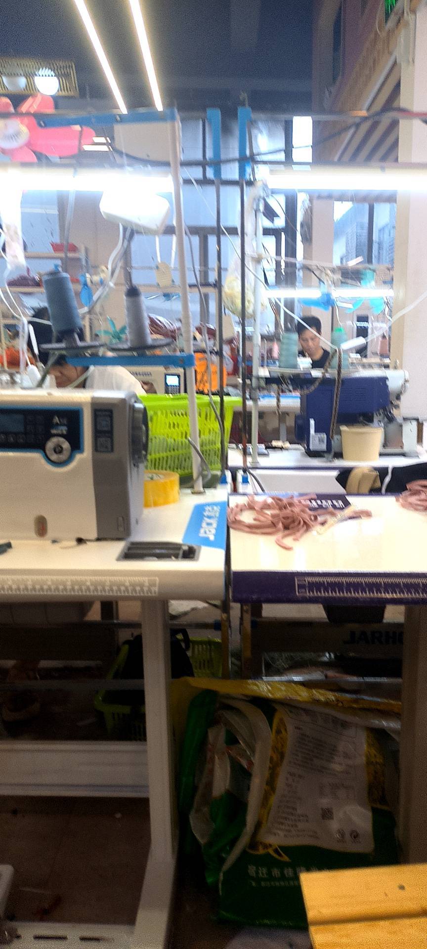 裤头车:2台,剪线机:2台,断布机:1台,钉扣:2台,自动打扣机:2台,颗粒炉:2台,平眼:1台,平车:60台,打边机:20台,烫台:3台,五线:10台,四线:10台