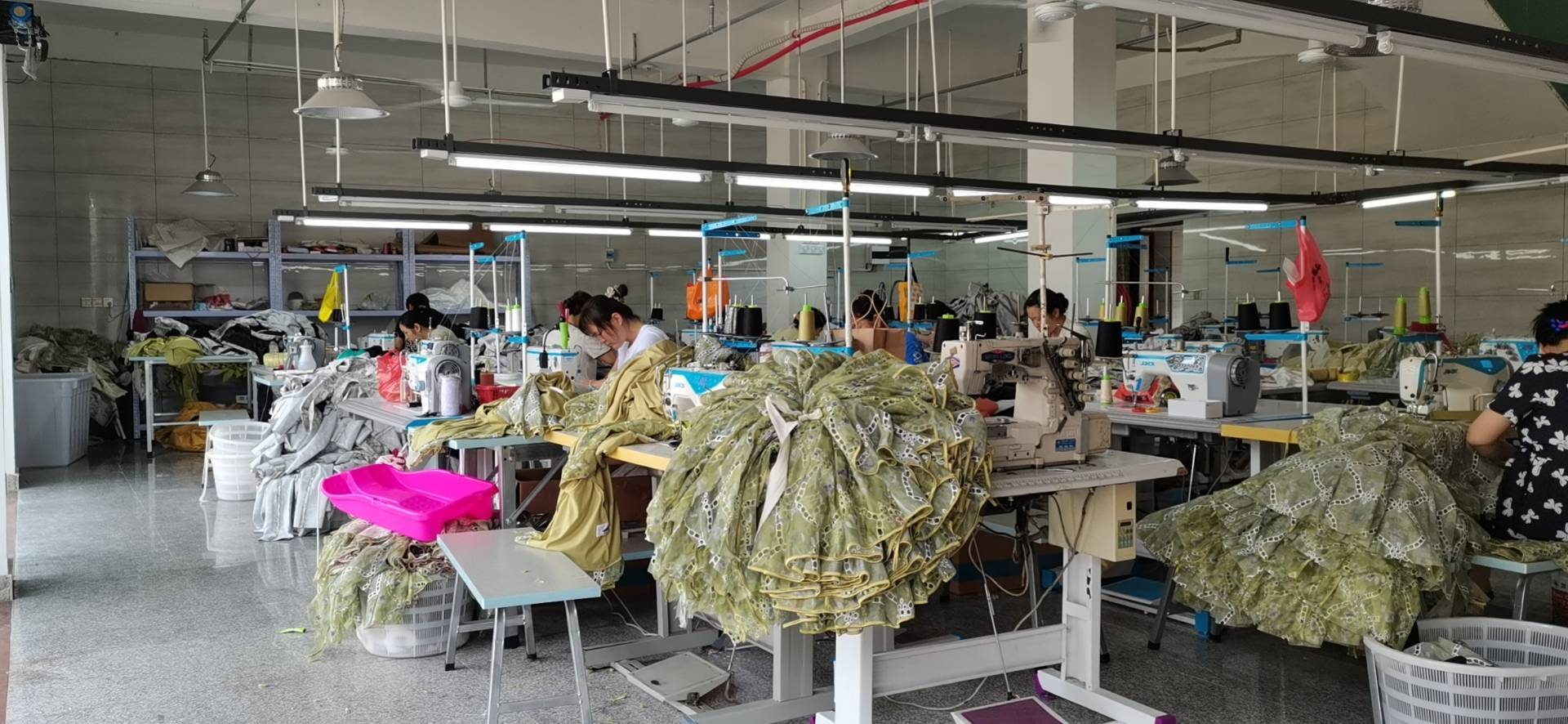 新开工厂,位于湖北黄冈武穴市余川镇,现有车位20人,做流水,连衣裙,雪纺,蕾丝,小香风,诚寻一手货源,