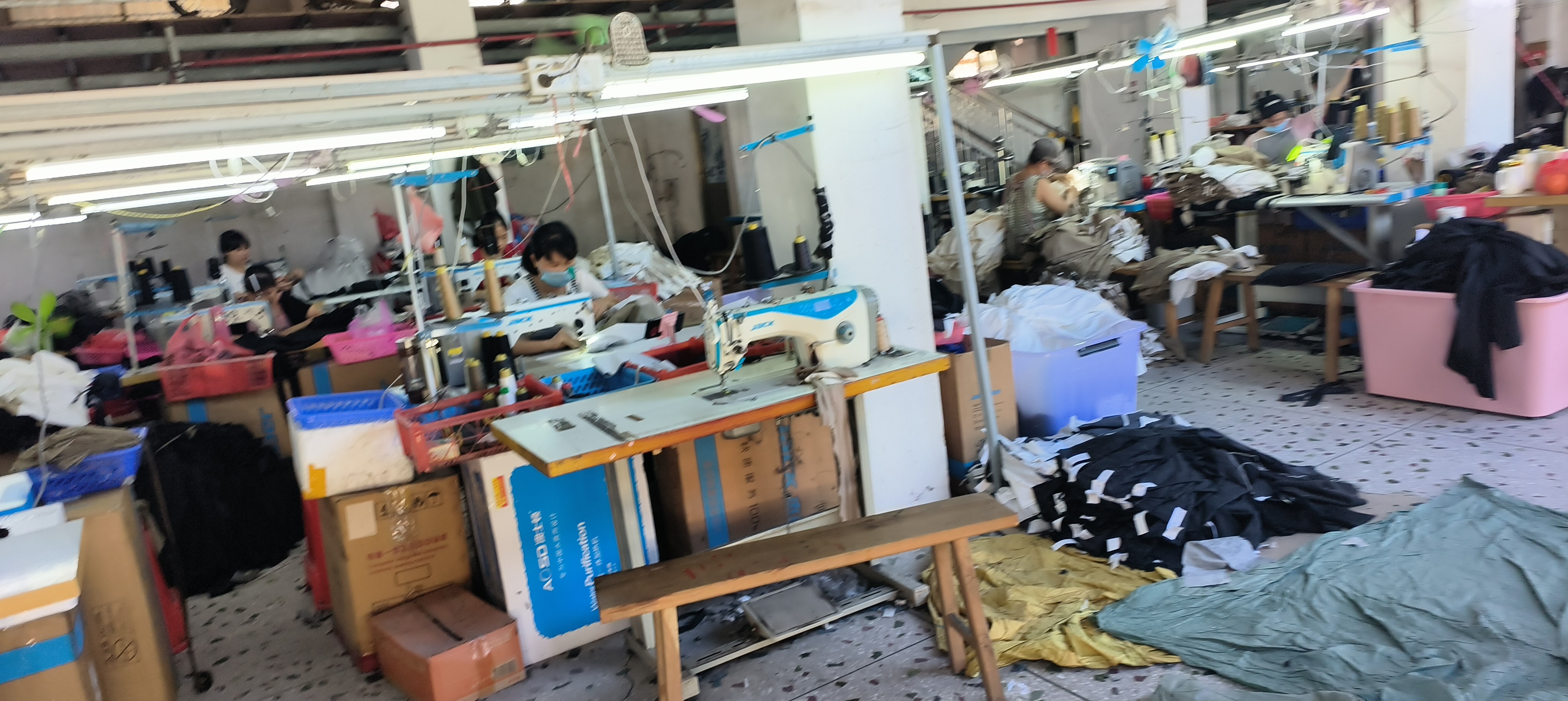 裤头车:2台,剪线机:2台,断布机:1台,平车:25台,电烫炉:2台,直眼:1台,打边机:7台,双针车:3台,电剪:3台,烫台:2台,冚车:2台,裁床:1台,五线:5台,四线:6台