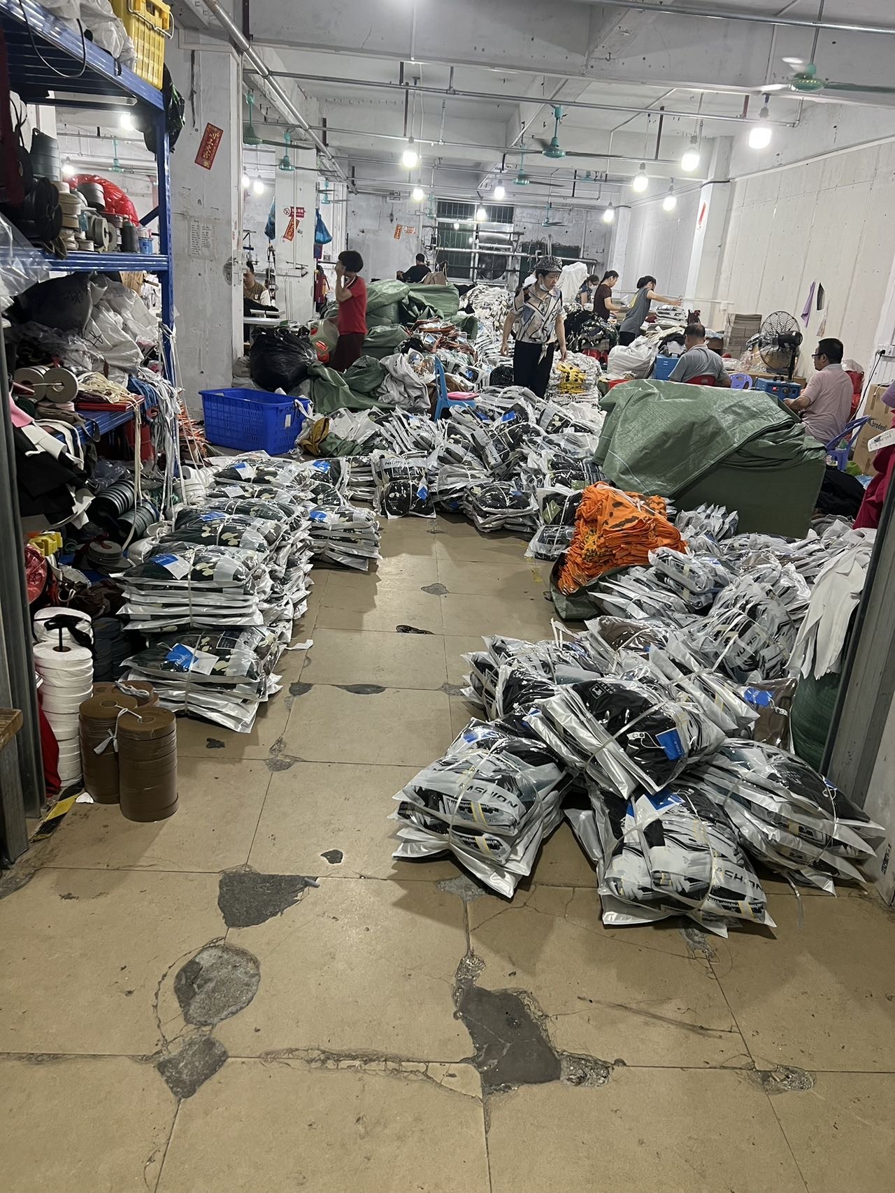裤头车:1台,剪线机:2台,平车:10台,双针车:2台,电剪:3台,烫台:2台,冚车:6台,唛架机:1台,锅炉:2台,裁床:12台,五线:1台,四线:15台