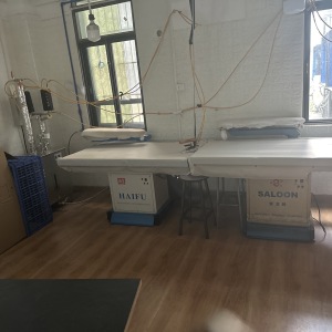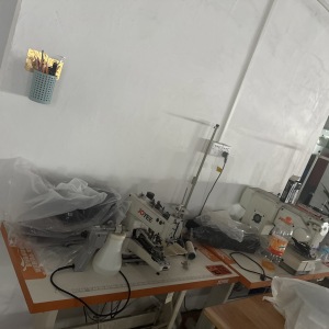 松布机:1台,定扣机:1台,剪线机:2台,钉扣:1台,自动打扣机:1台,平眼:1台,平车:25台,电烫炉:1台,直眼:1台,打边机:12台,双针车:1台,电剪:2台,烫台:2台,冚车:1台,唛架机:1台,锅炉:1台,裁床:2台,五线:4台,四线:12台