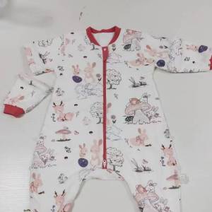 本厂主做婴幼儿睡袋哈衣爬服等针织梭织类产品。场地约1200平米左右,两条流水线作业80多号工人,管理完善。