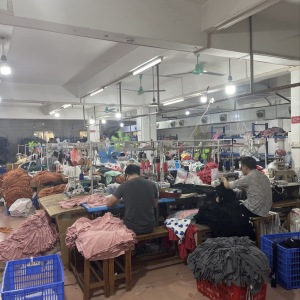 本厂主要致力于外贸服装的研发与生产,坐落在广州海珠区,周边配套设施完善,工人技术优质,能够在短时间保质保量且快速的完成订单,欢迎客户光临及深度合作。
