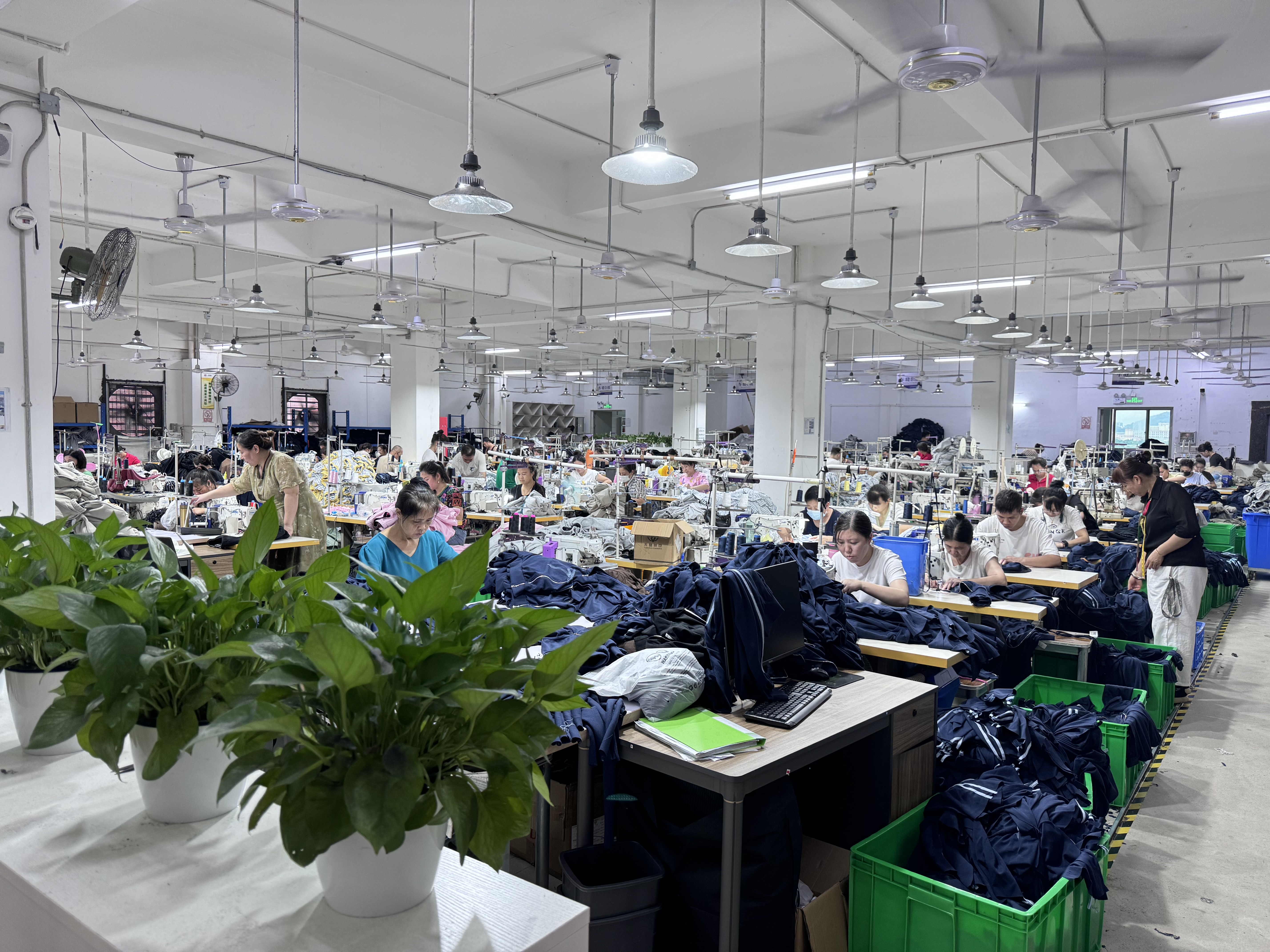 裤头车:6台,智能模板机:5台,自动拉布机:2台,电脑自动裁:1台,松布机:2台,定扣机:4台,挑脚机:1台,验布机:1台,断布机:4台,钉扣:4台,颗粒炉:1台,平车:85台,电烫炉:15台,电脑凤眼:1台,打边机:40台,双针车:4台,电剪:10台,烫台:15台,冚车:35台,唛架机:2台,锅炉:1台,裁床:4台,五线:2台,四线:40台